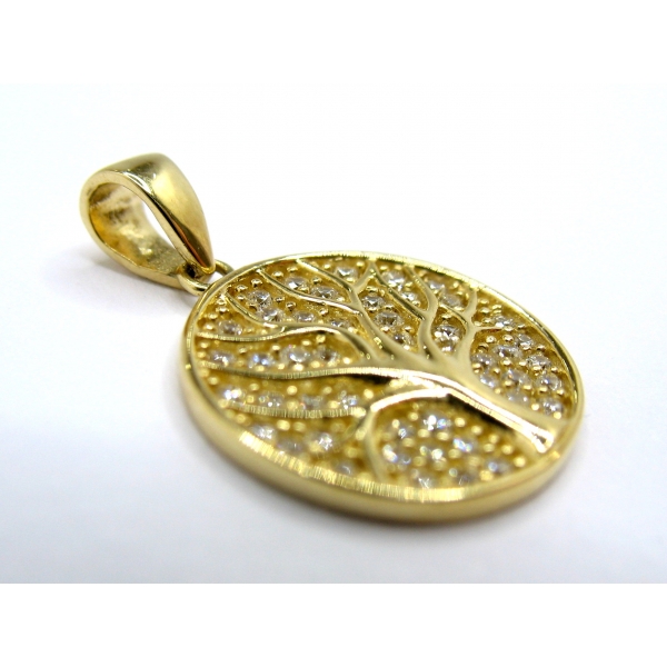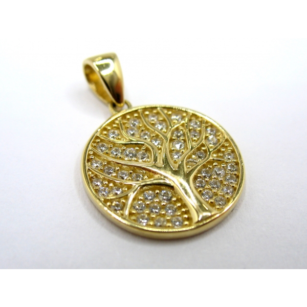 Přívěšek vyrobený ze 14kt zlata zdobený zirkony , strom života