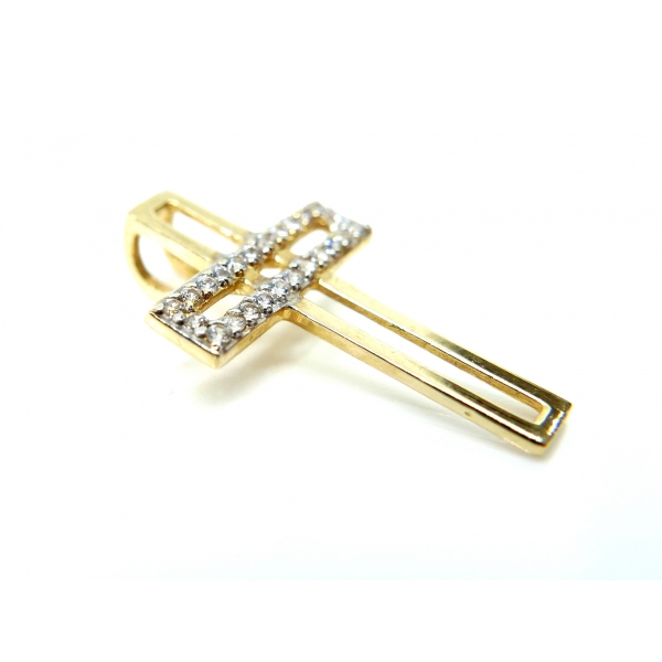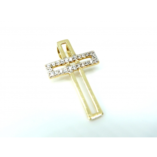 Přívěšek kříž vyrobený ze 14kt zlata se zirkony