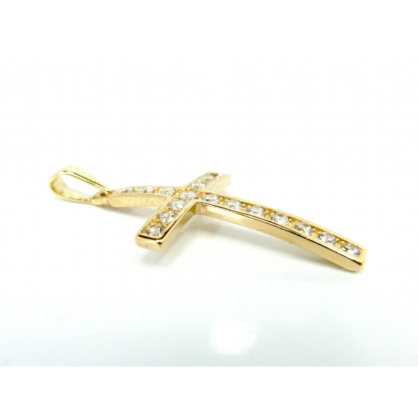 Přívěšek křížek vyrobený ze 14kt zlata posázený zirkony
