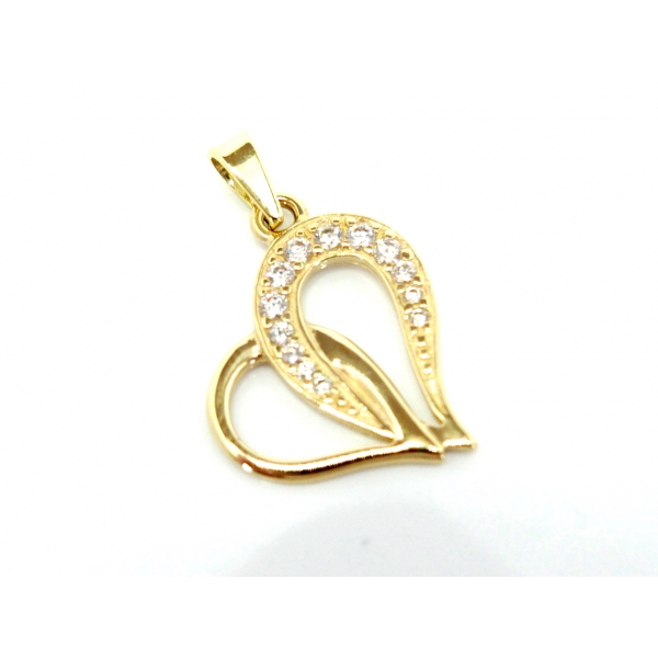Přívěšek srdce vyrobený ze 14kt zlata posázený zirkony