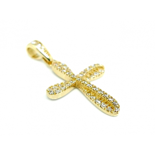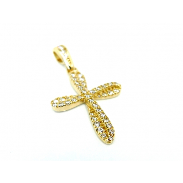 Přívěšek křížek vyrobený ze 14kt zlata posázený zirkony