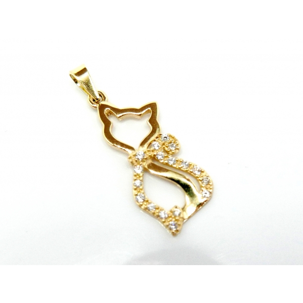 Přívěšek kočka vyrobený ze 14kt zlata posázený zirkony