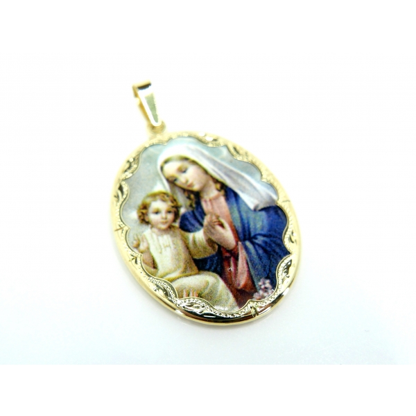 Přívěšek madonka vyrobený ze 14kt zlata zdobený ručně malovanou keramikou