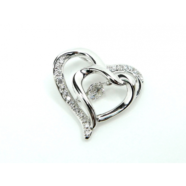 Přívěšek vyrobený ze 14kt bílého zlata ve tvaru srdce zdobený brilianty