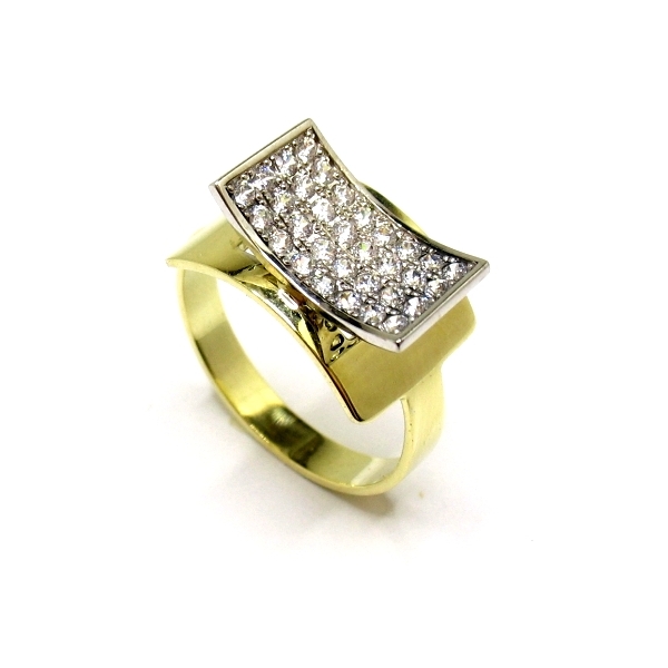 Prsten vyrobený ze 14kt kombinovaného zlata zdobený zirkony. Originální šperk, limitovaná edice.