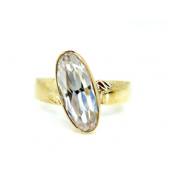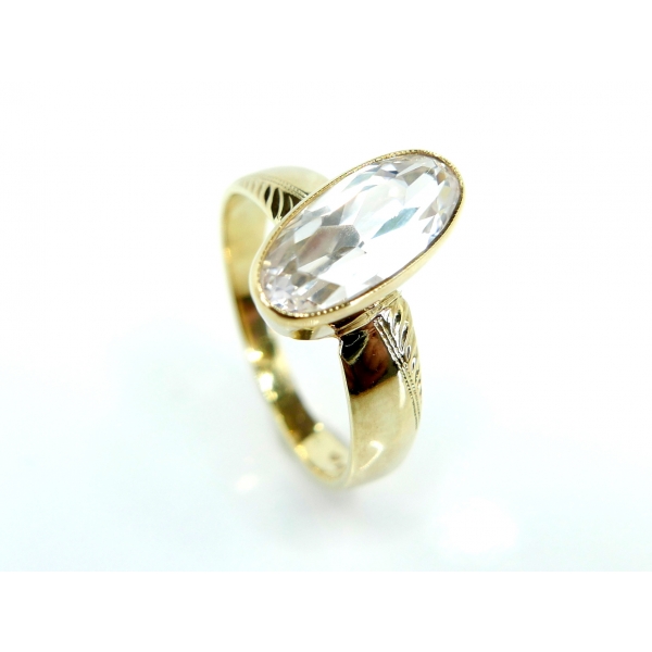 Prsten vyrobený ze 14kt zlata zdobený výrazným zirkonem, vyráběný pro zákaznici na míru podle kamene