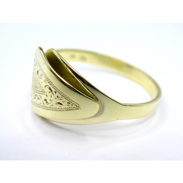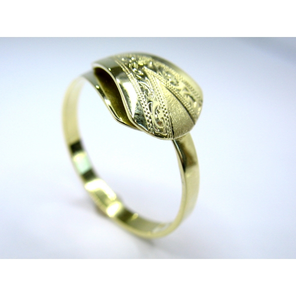 Prsten vyrobený ze 14k zlata zdobený ručním rytím a matováním, velmi hezká a kvalitní ruční práce
