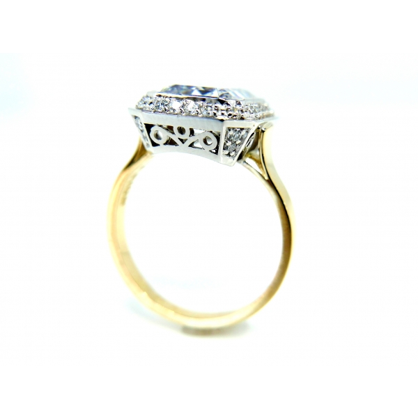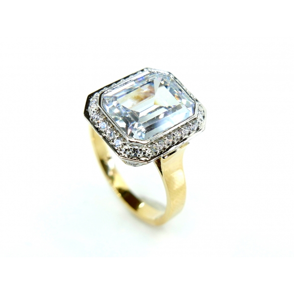 Prsten vyrobený ze 14kt zlata zdobený zirkony, velký středový kámen s úžasným výbrusem plný lesku