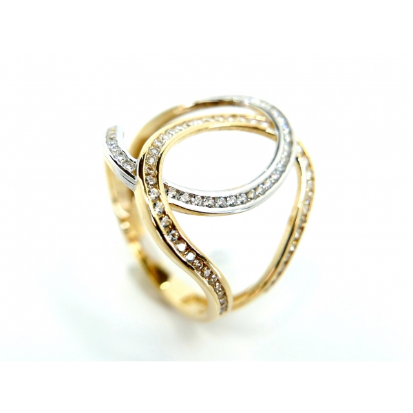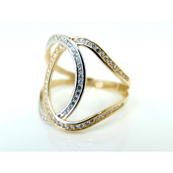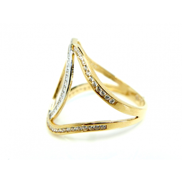 Velmi zajímavě řešený prsten vyrobený ze 14kt zlata zdobený zirkony