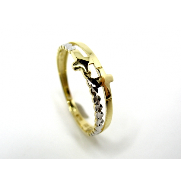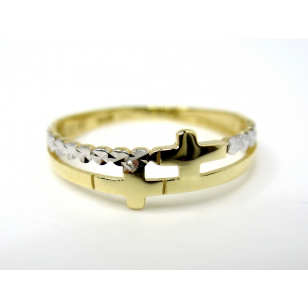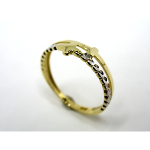 Prsten vyrobený ze 14 k zlata, zdobený bílým zlatem