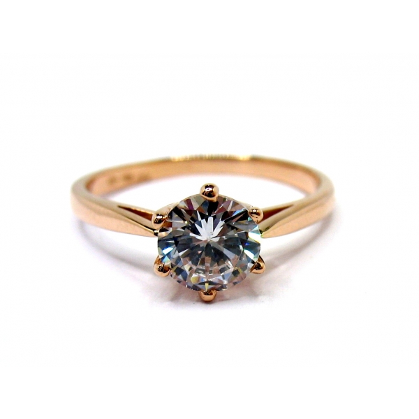 Zásnubní prsten vyrobený ze 14k červeného zlata s výrazným středovým kamenem.Lze vyrobit také v bílém,nebo žlutém zlatě a s drahokamem moissanitem, nebo briliantem.