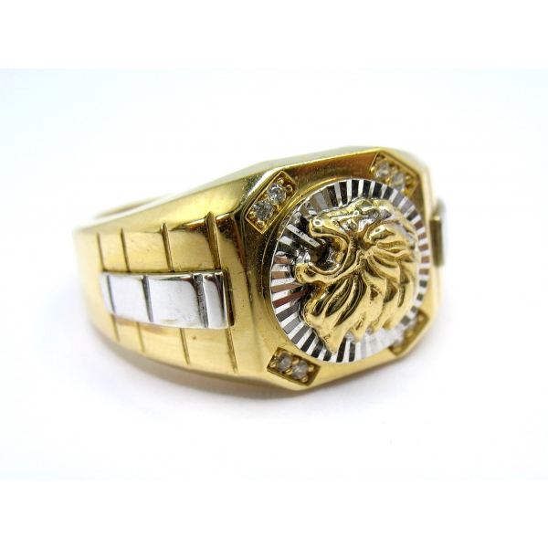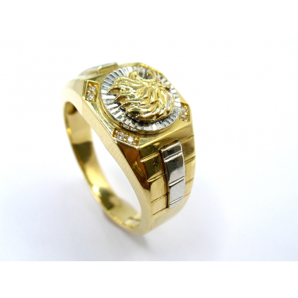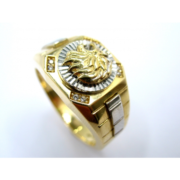 Pánský prsten vyrobený ze 14kt zlata zdobený bílým zlatem a zirkony, vel 64
