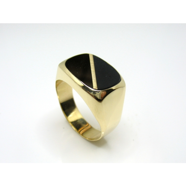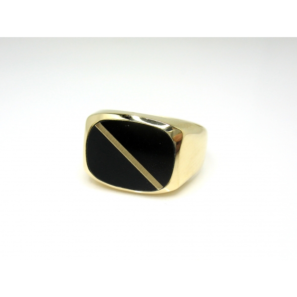 Pánský prsten vyrobený ze 14kt zlata zdobený onyxem