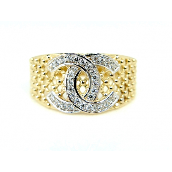 Zlatý prsten vyrobený ze 14kt zlata zdobený zirkony