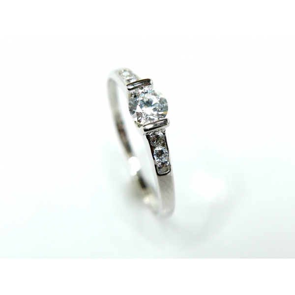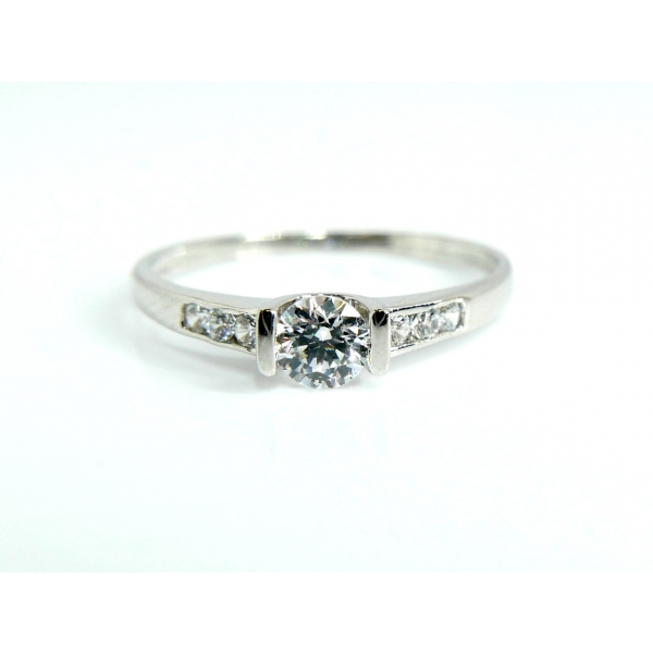 Zásnubní prsten vyrobený ze 14kt bílého zlata , posázený zirkony