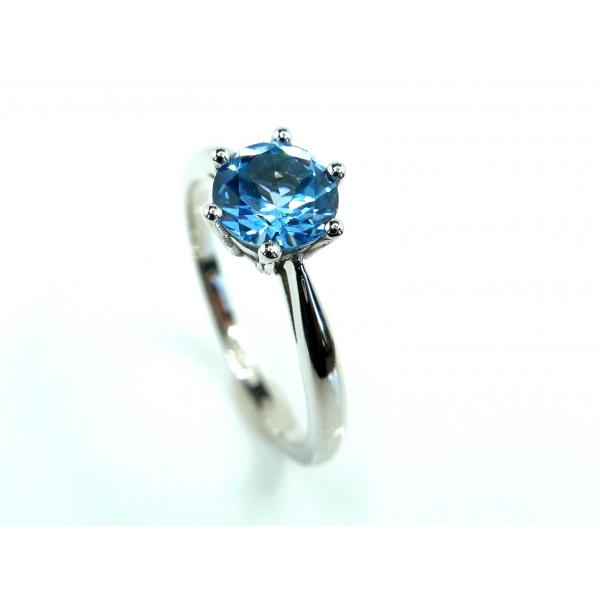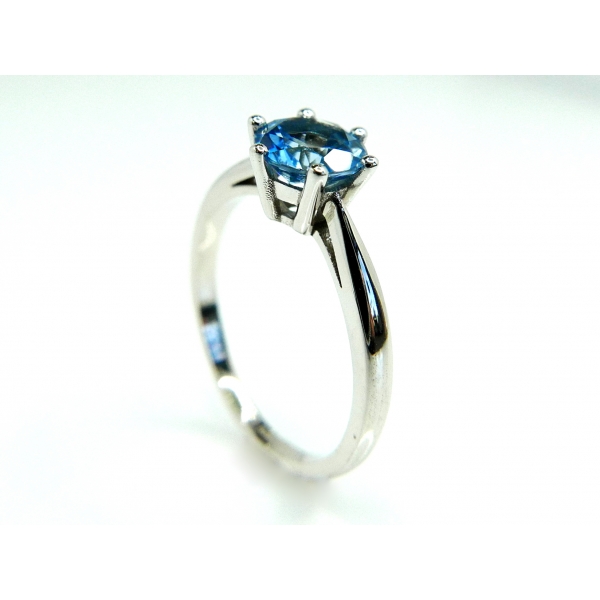 Zásnubní prsten vyrobený ze 14kt zlata zdobený modrým zirkonem