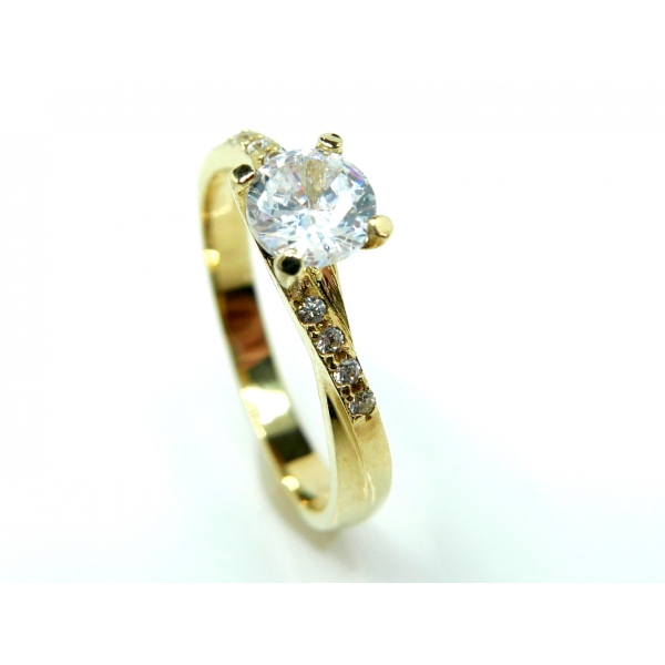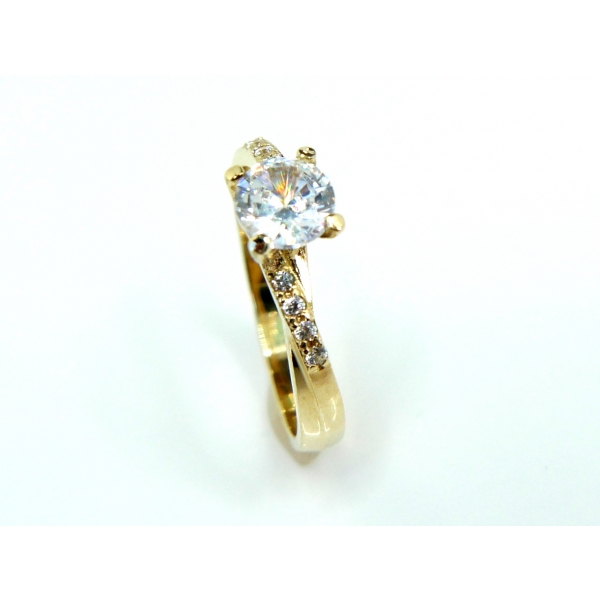 Zásnubní prsten vyrobený ze 14kt zlata zdobený zirkony