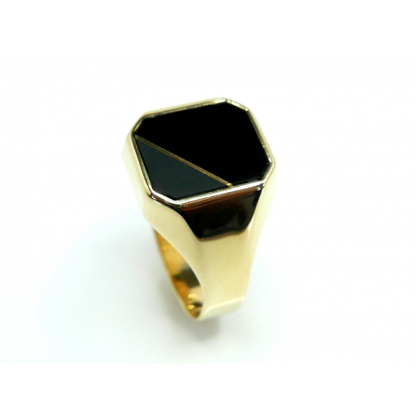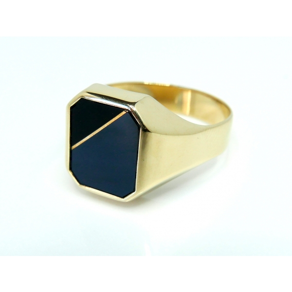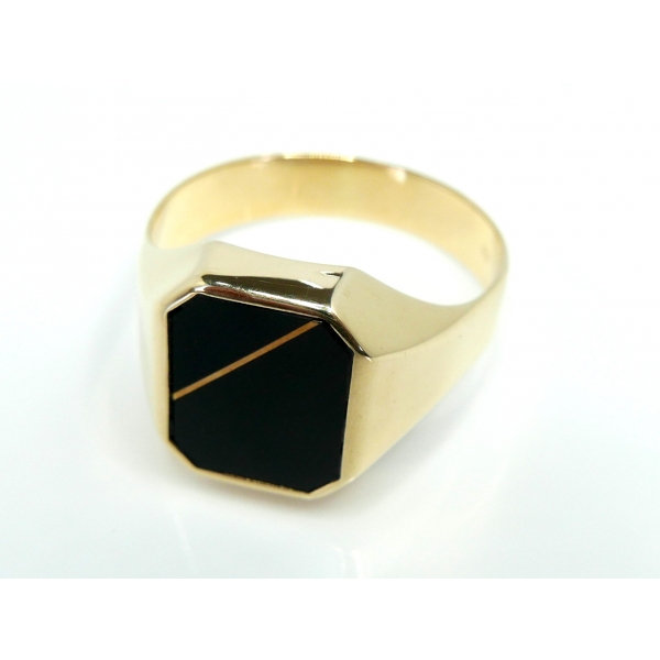 Prsten vyrobený ze 14kt zlata zdbený onyxem