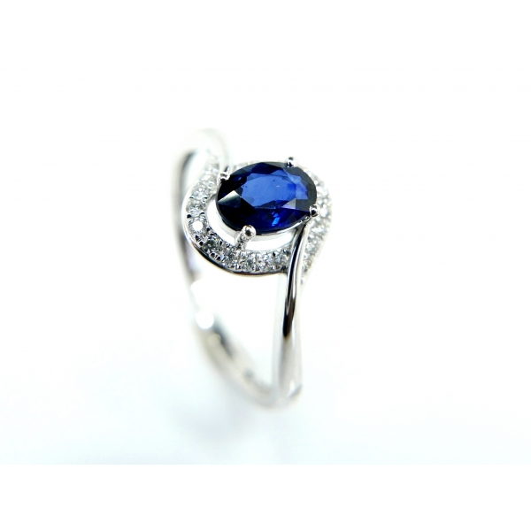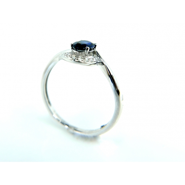 Prsten z bílého 14kt zlata s brilianty a safírem, vel 53