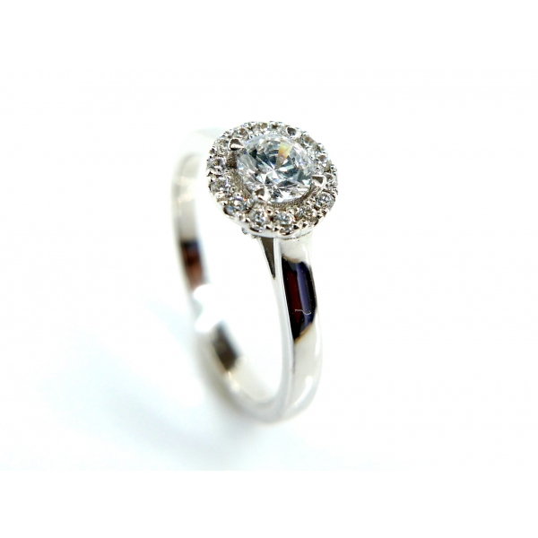 Prsten vyrobený ze 14kt bílého zlata posázený zirkony
