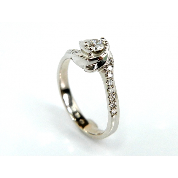Luxusní zásnubní prsten vyrobený ze 14kt bílého zlata posázený brilianty středová korunka tvarovaná do květu růže, velmi precizní a luxusní provedení