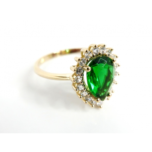 Luxusní provedení u ručně vyráběného prstene podle kamene zákazníka. Prsten je vyrobený ze 14kt zlata posázený zirkony