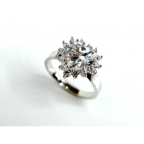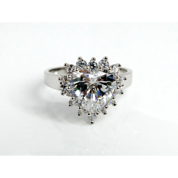 Luxusní zásnubní prsten vyrobený ze 14kt zlata posázený zirkony kde hlavní kámen a okolní menší tvoří srdce. Perfektní zpracování a nádherný výbrus kamenů zajišťuje neskutečný lesk