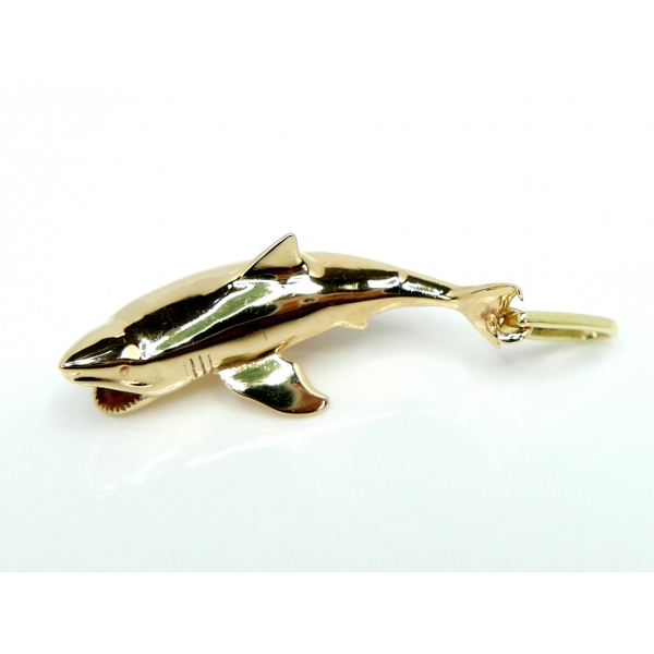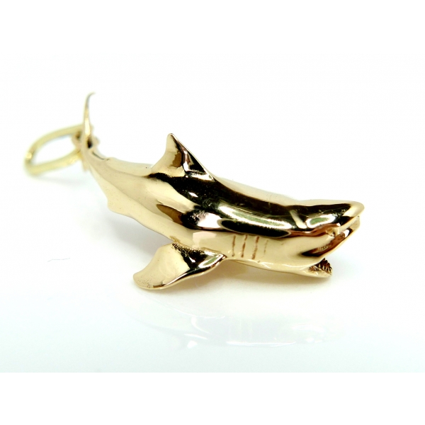 Přívěšek žraloka vyrobený ze 14kt zlata, plný ručně vyráběný 3D žralok