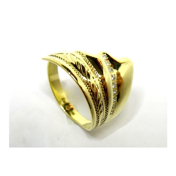 ŠIROKÝ PRSTEN ZE ŽLUTÉHO ZLATA OSÁZENÝ ZIRKONKY.